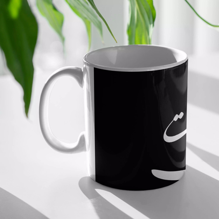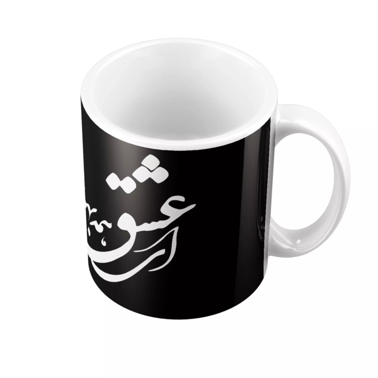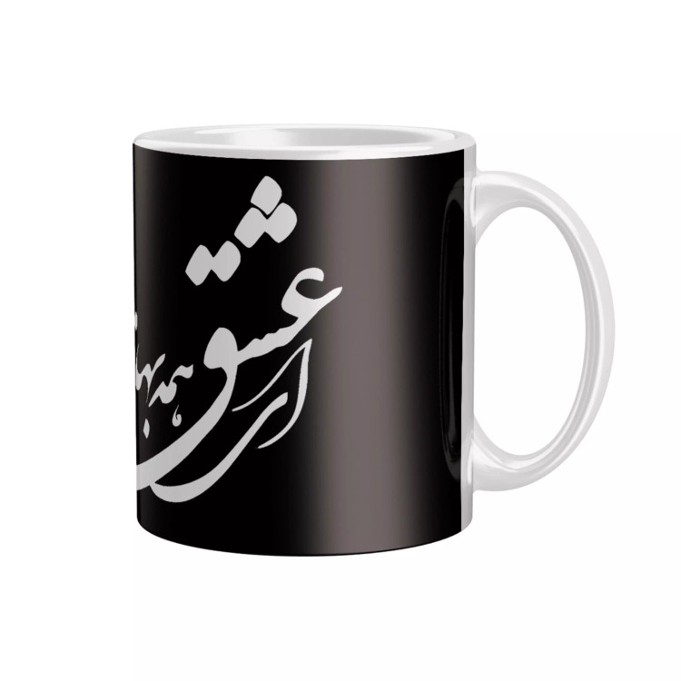 ماگ(جعبه کادویی رایگان) سرامیکی دسته و داخل سفید سیاه مشق عشق FH-2243