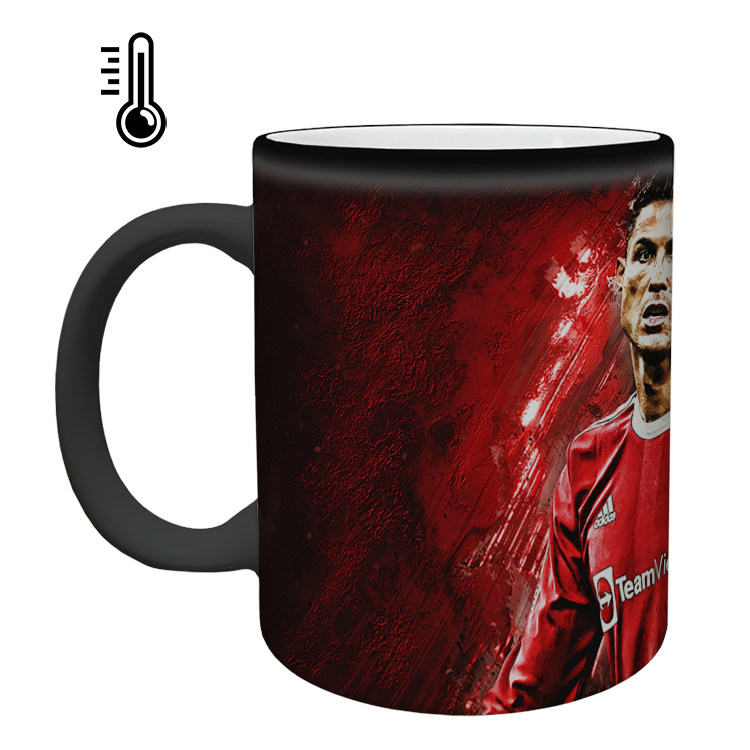ماگ حرارتی که به لیوان جادویی نیز معروف هست یک نوع لیوان از جنس سرامیک می باشد که روکش یا لعابی از جوهر اکسیده مخصوص این کار پوشیده شده است، این ماگ ها به گونه ای هستند که با تغییر درجه دما و میزان حرارت رنگ شان تغییر میکند و یا طرح اصلی که زیر آن چاپ شده است و گرم شدن آن پیدا می شود. البته این ماگ ها بیشتر برای خوردن نوشیدنی های گرم استفاده می شود چرا که با گرما طرح اصلی شان را نشان می دهند. سطح اصلی تمام ماگ های حرارتی مشکی، بنفش و یا سرمه ای می باشد به این دلیل به آن ماگ تغییر رنگ با احساسات می گونید چرا که به عنوان مثال اگر دست استرس داشته باشید یا هیجان زده شده باشید با حرارت دست شما رنگش تغییر می کند . ما همیشه دوست داریم که به عزیزانمان و افرادی که نقش مهمی در زندگی ما دارند هدیه ای خاص و متمایز بدهیم. لیوان جادویی به دلیل این خاصیت و مشخص نبودن تصویر آن به روش معمول می تواند گزینه ای جذاب و شگفت آور باشد. زمانی که شما دنبال یک هدیه مناسب برای خودتون یا یکی از نزدیکانتون جهت یادآوری فعالیت های ورزشی و علاقه شون به رونالدو هستید، قطعا یک ماگ چاپ شده گزینه خوبی هست. چرا که طرح چاپ شده روی ماگ از بین نمیرود و همین ماگ معمولی به عنوان هدیه، یادآور محبت بین شما و عزیزانتون خواهد بود. ماگ تولید کشور چین هست و داخل ایران چاپ خورده میشود. جنس رویه ماگ و چاپ انجام شده براق هستند و همین باعث میشود که طرح روی لیوان خیلی خوب خودنمایی کند و جذابیت آن را افزایش دهد. جنس لیوان سرامیک درجه1 بوده و طرح با رنگ درجه1 کره ای چاپ شده است که کاملا قابل شستشو میباشد.