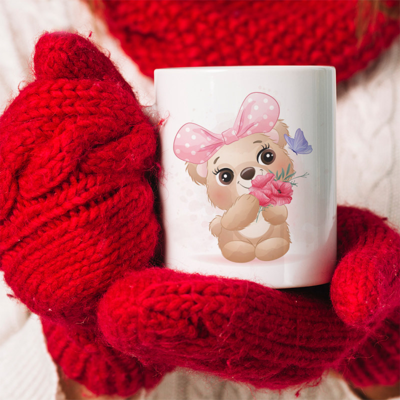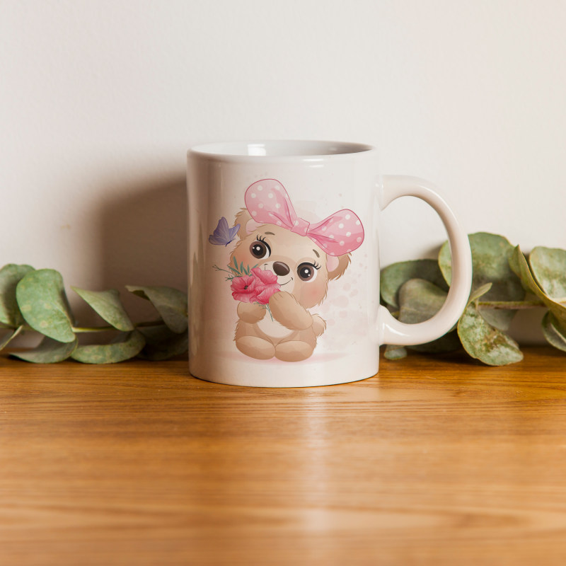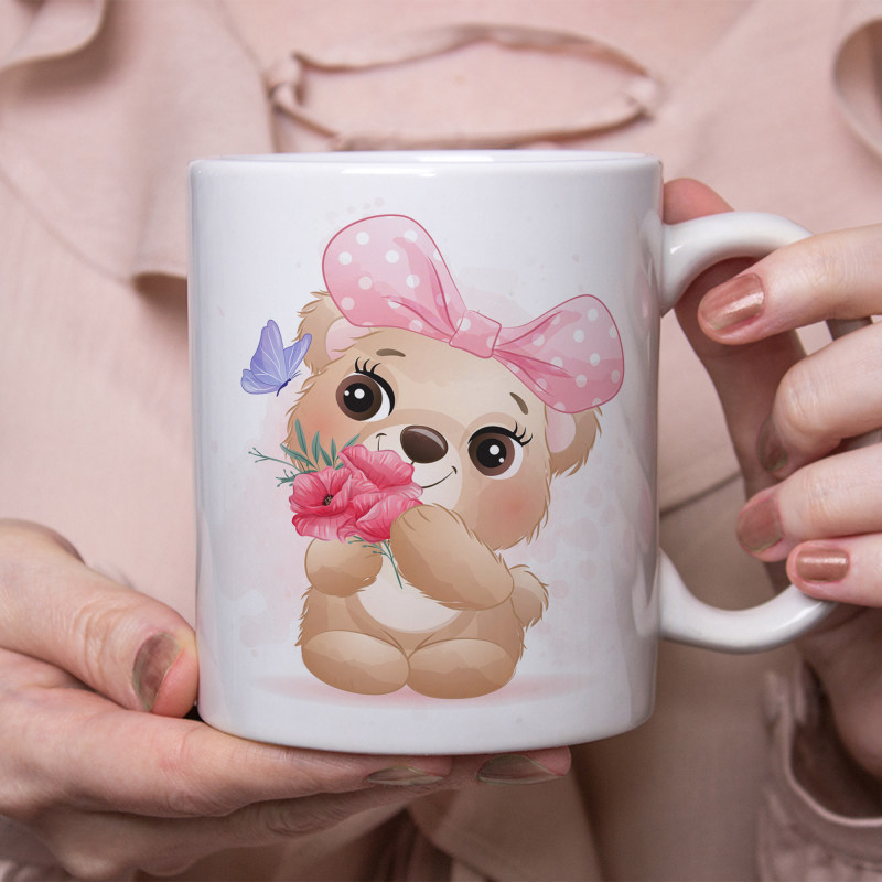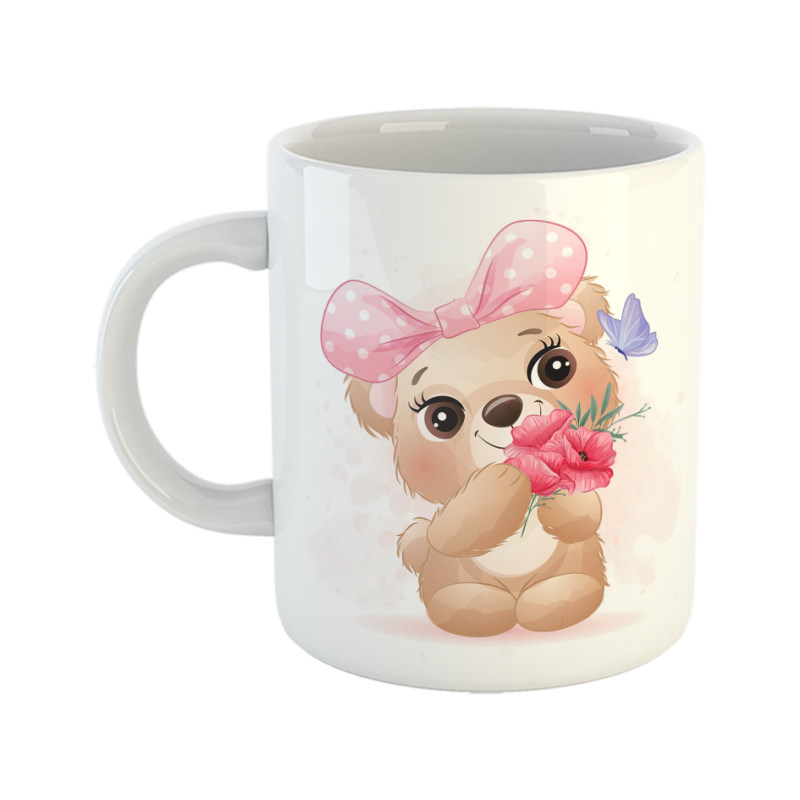 خرید ماگ-لیوان خرس پاپیون صورتی و پروانه