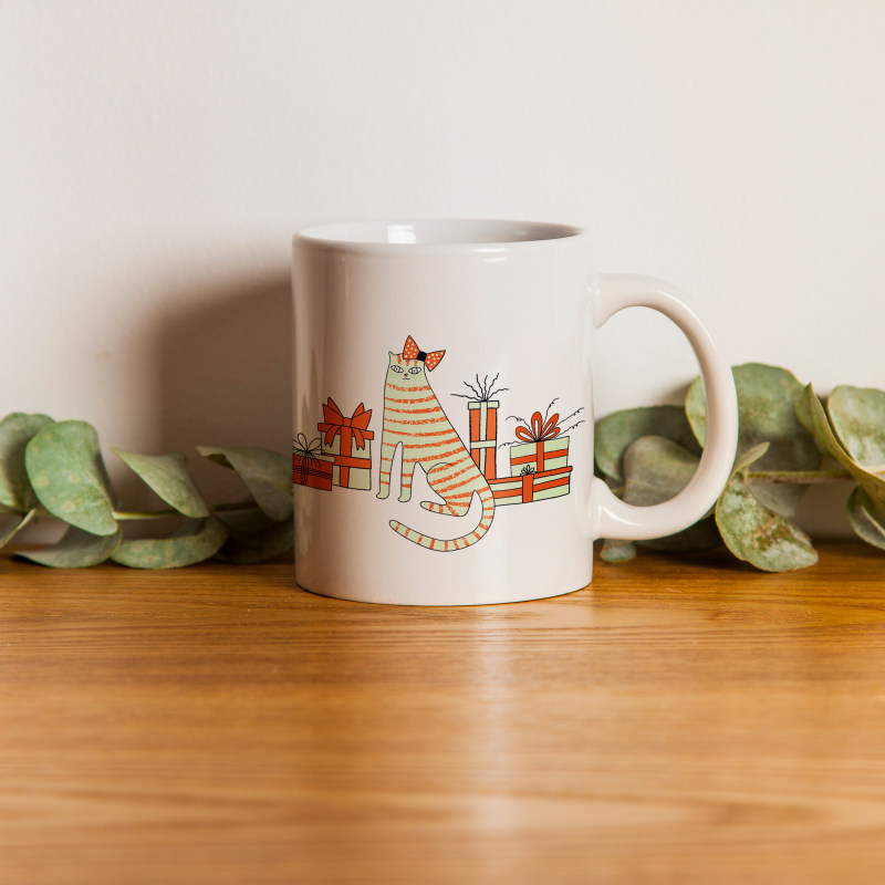 خرید ماگ-لیوان گربه نارنجی پاپیونی