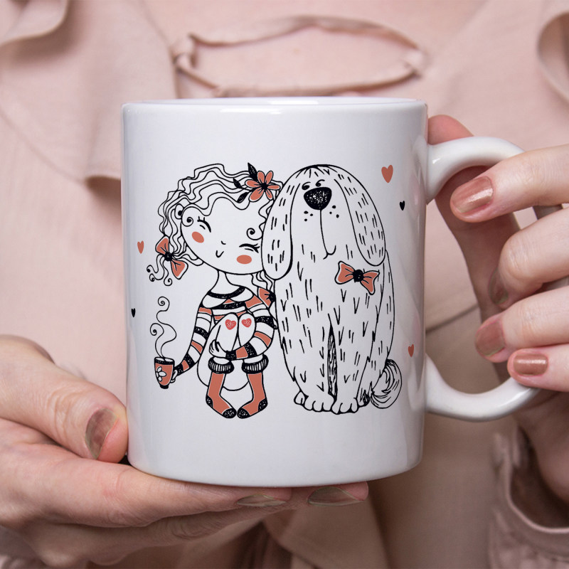 خرید ماگ-لیوان دختر مهربان و سگ بامزه بهترین دوست