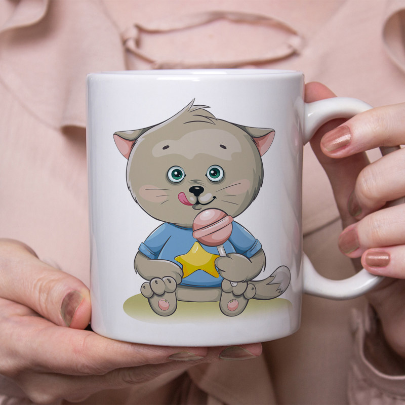 خرید ماگ-لیوان بچه گربه و آبنبات چوبی