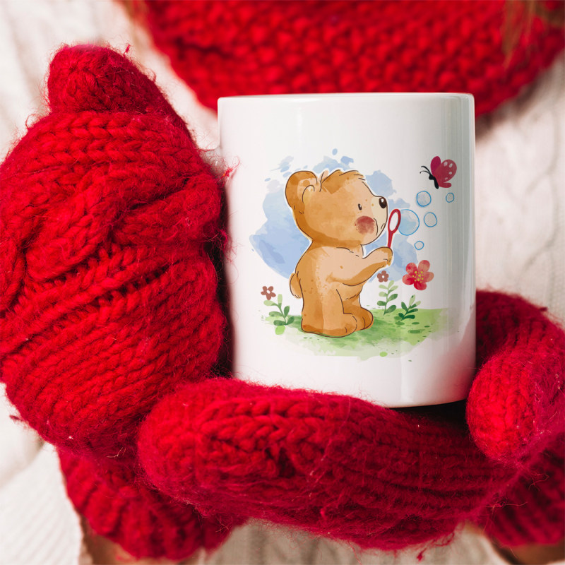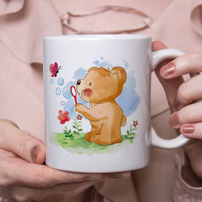 خرید ماگ-لیوان خرس و پروانه بازی با حباب