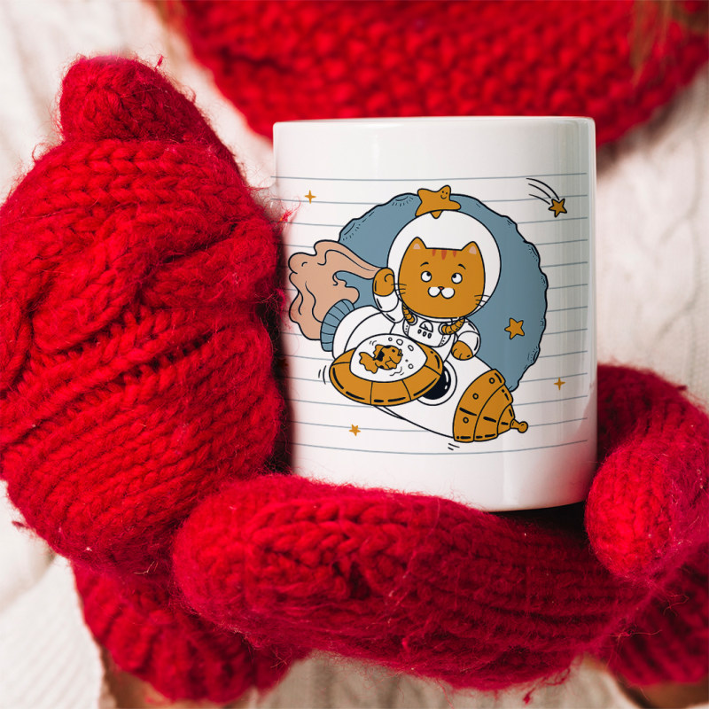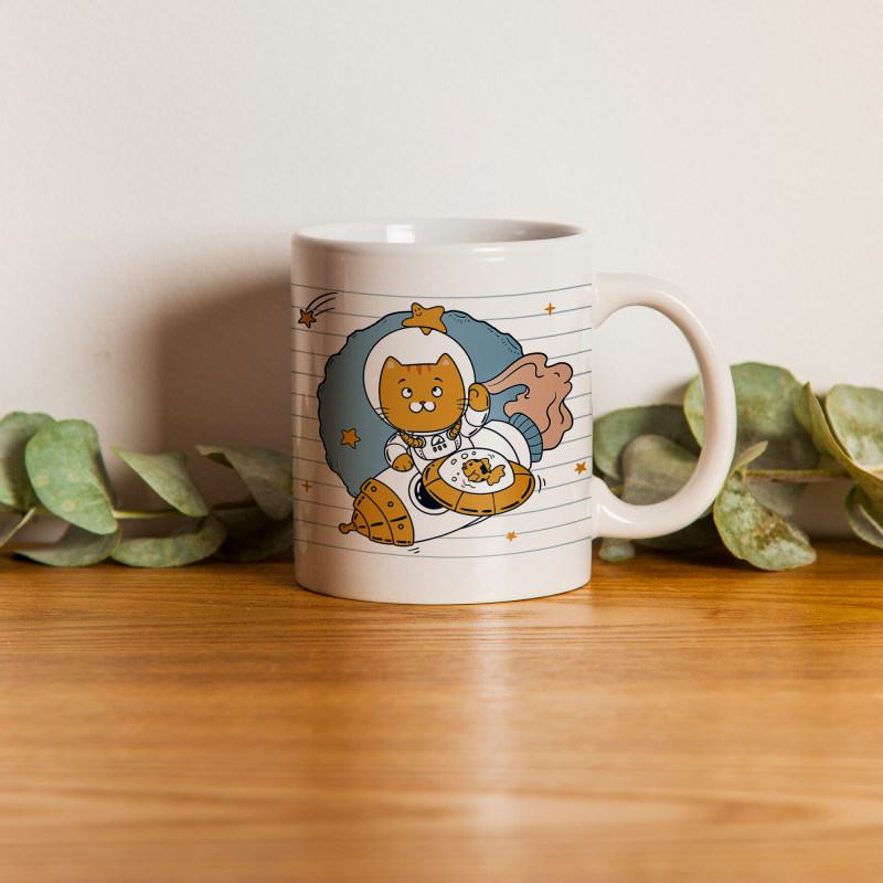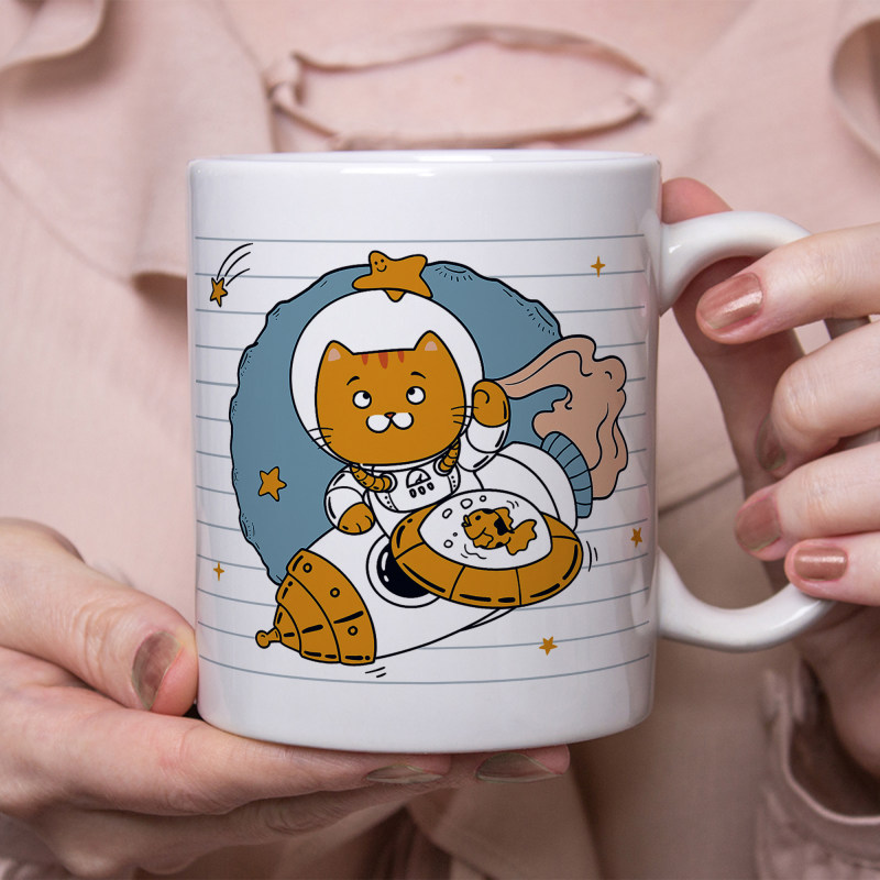 خرید ماگ-لیوان گربه و ماهی فضانورد