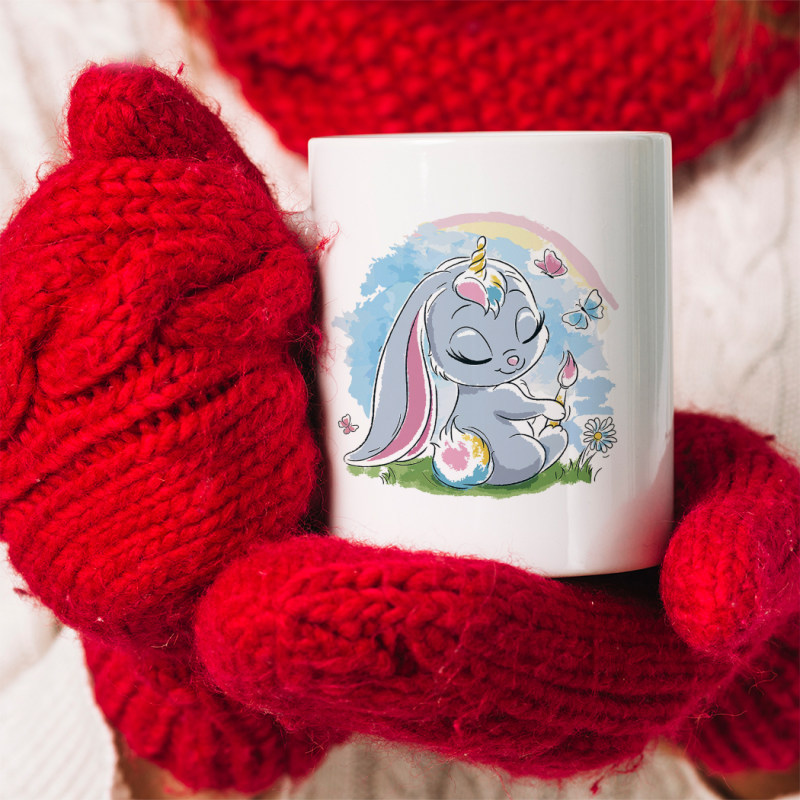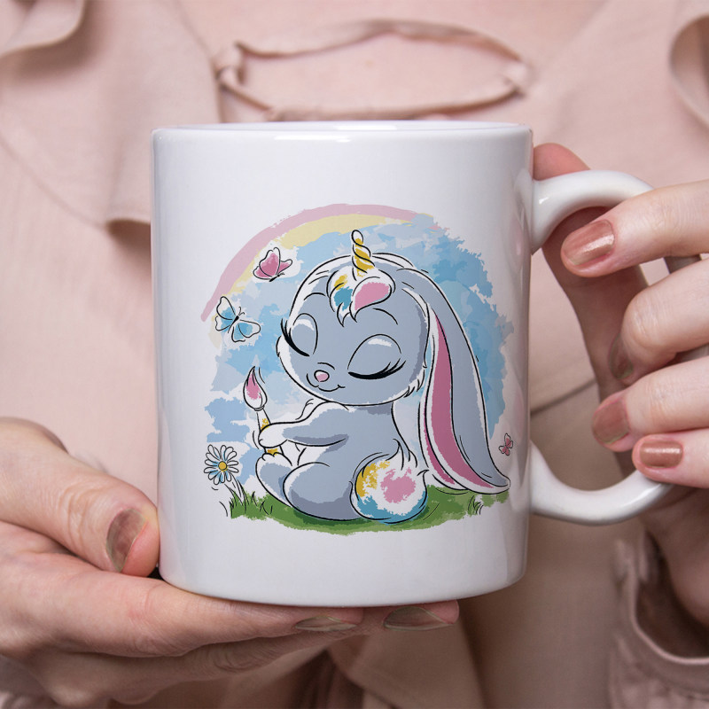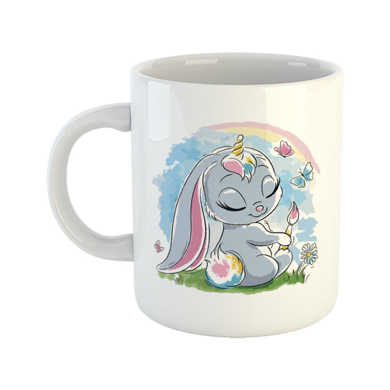 خرید ماگ-لیوان خرگوش تک شاخ نقاشی رنگین کمان