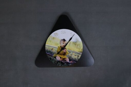 حالا شما به توضیحات بالا قابلیت چاپ بر روی ساعت را نیز اضافه کنید. نتیجه کار فوق العاده است: هم از عکس چاپ شده خودتان یا عزیزانتان انرژی میگیرید و هم از ساختار مثلثی شکل این ساعت. در نظر داسته باشید که جنس این ساعت چوبی، و از نوع تخته سه لایه است.