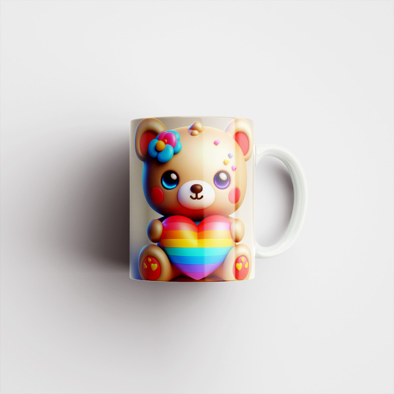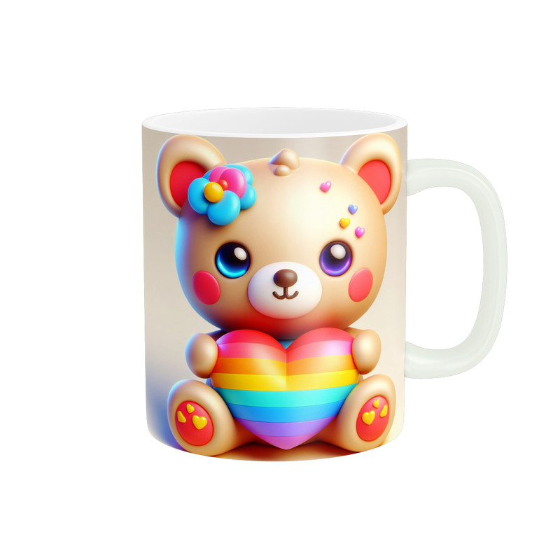 ماگ پاد آفرین طرح خرس کارتونی و قلب چند رنگ کد 1013