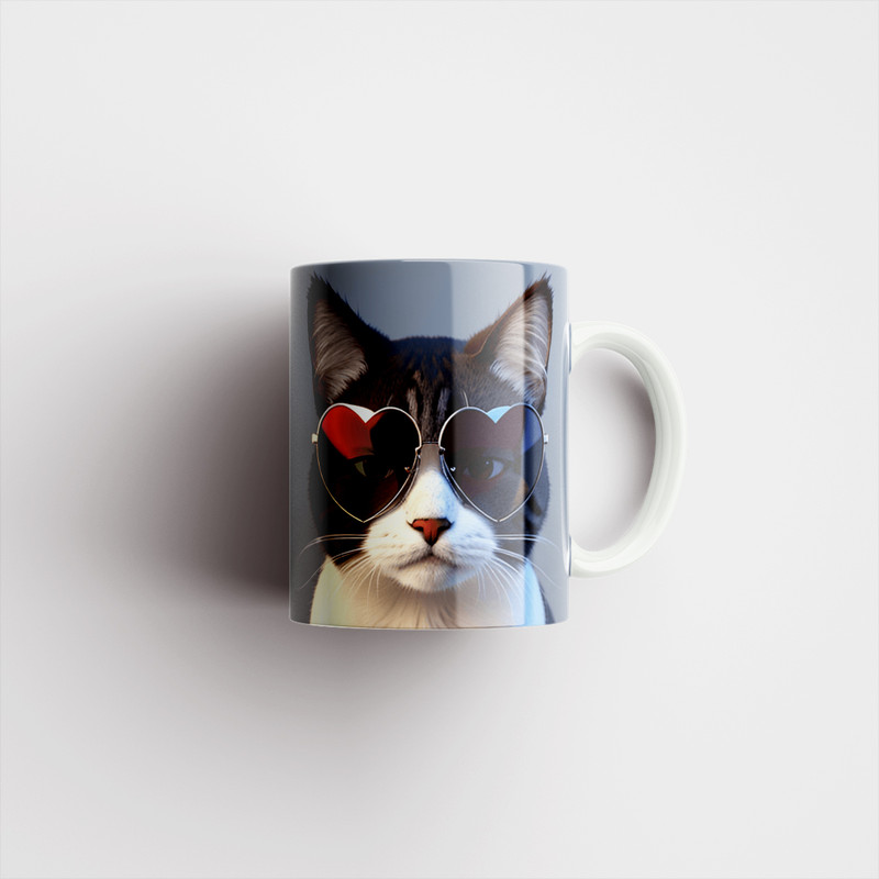 طرح ماگ : ماگ پاد آفرین طرح گربه مدل عینک قلبی کد 1251