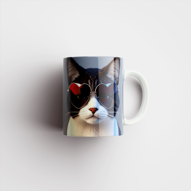 طرح ماگ : ماگ پاد آفرین طرح گربه مدل عینک قلبی کد 564