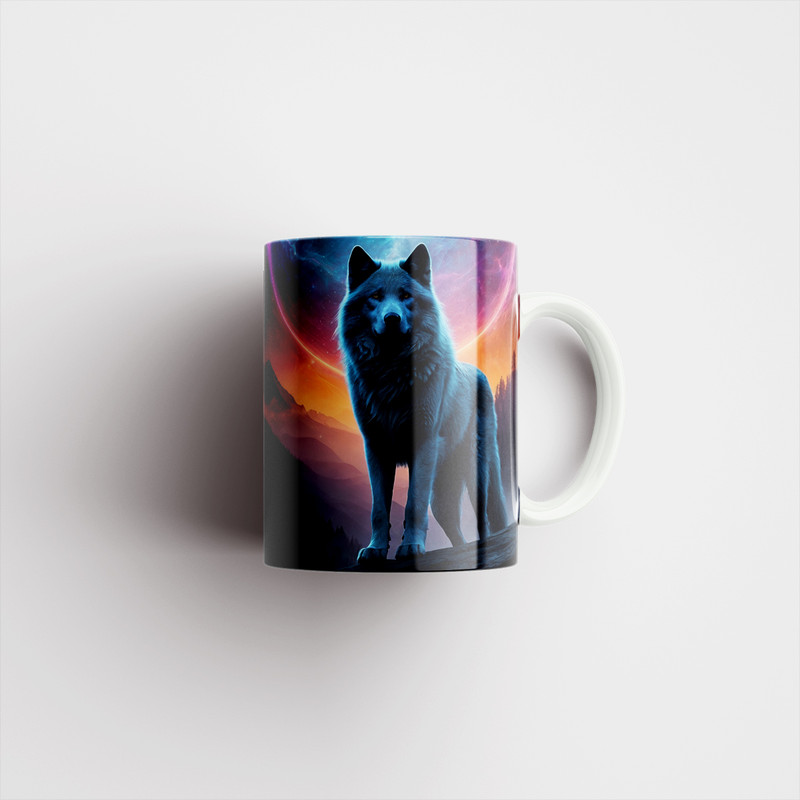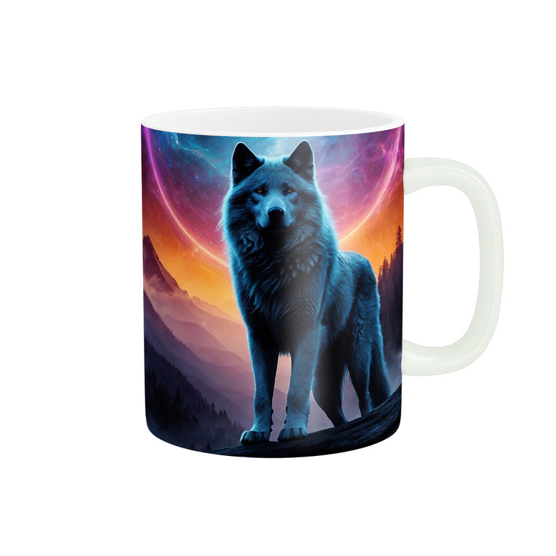 ماگ پاد آفرین طرح گرگ و ماه چند رنگ کارتونی کد 1469