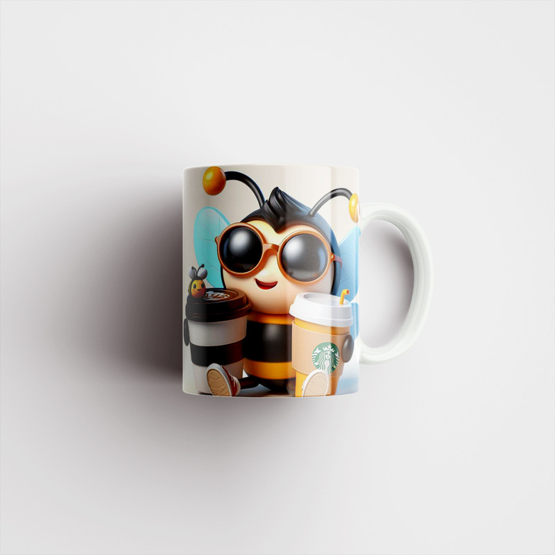 طرح ماگ : ماگ پاد آفرين طرح زنبور عسل کارتوني مدل قهوه استارباکس کد 1130
