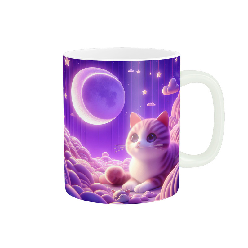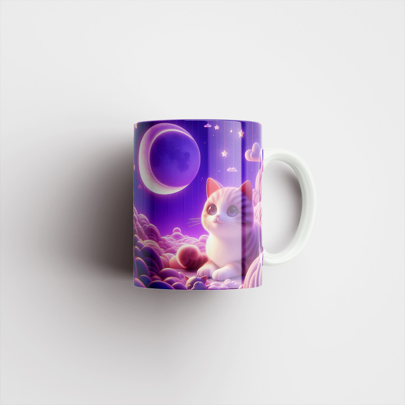 ماگ پاد آفرین طرح گربه مدل آسمان بنفش و ماه کد 1248