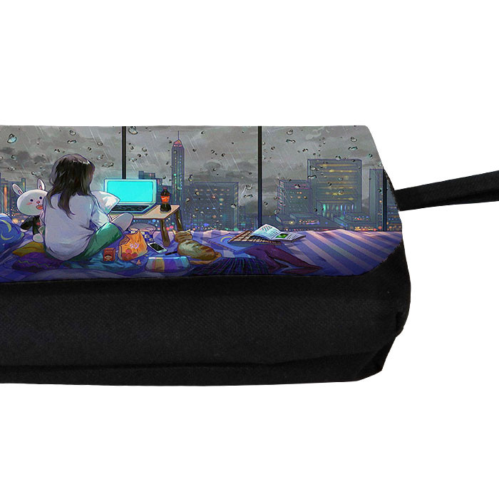این جامدادی با بدنه برزنتی محکم و دوخت با دوام دارای دو جا با فضای مناسب و کافی برای نگهداری نوشت افزار است که توسط زیپ بسته می شود . قسمت درب رویه طرح از جنس ساتن است که بر روی برزنت دوخته شده و درب به شکل چسب پارچه ای بسته می شود . همچنین یک بند مچی از جنس برزنت دارد.