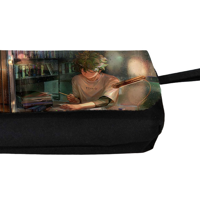 این جامدادی با بدنه برزنتی محکم و دوخت با دوام دارای دو جا با فضای مناسب و کافی برای نگهداری نوشت افزار است که توسط زیپ بسته می شود . قسمت درب رویه طرح از جنس ساتن است که بر روی برزنت دوخته شده و درب به شکل چسب پارچه ای بسته می شود . همچنین یک بند مچی از جنس برزنت دارد.