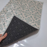 پادری طرح بوته چین سایز 80x50 سانتی متر: این محصول مانند تصویر دارای سه لایه میباشد لایه اول از جنس مخمل لایه دوم جهت زخامت کار و نرمی از جنس نمد لایه سوم دانه های چرم مصنوعی جهت جلوگیری از لغزش