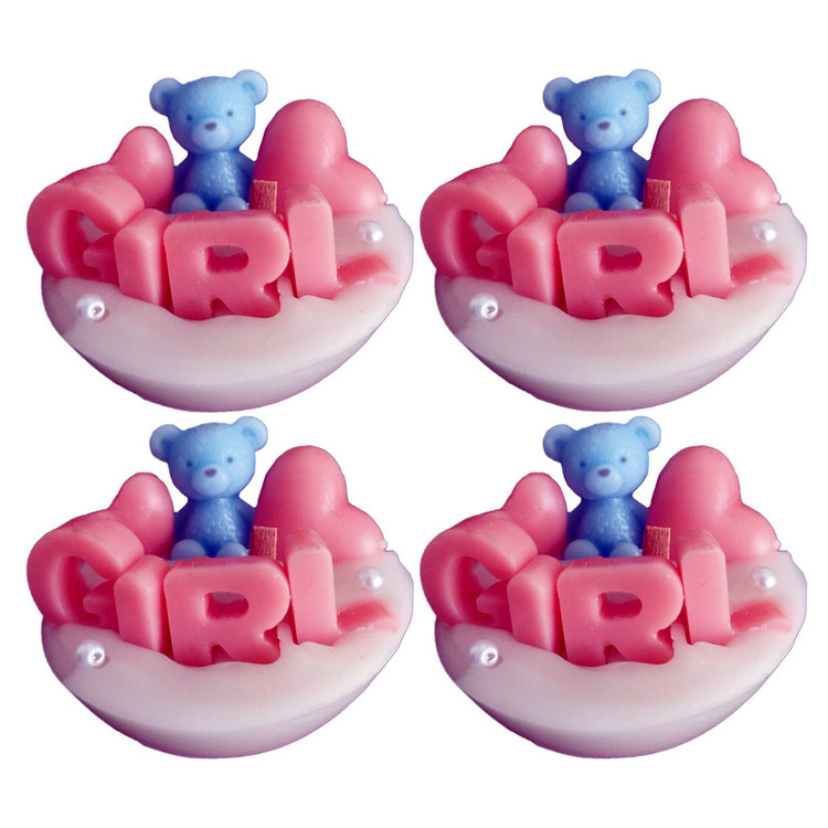 شمع دست ساز مدل گیفت طرح خرس دخترانه مجموعه 4 عددی
