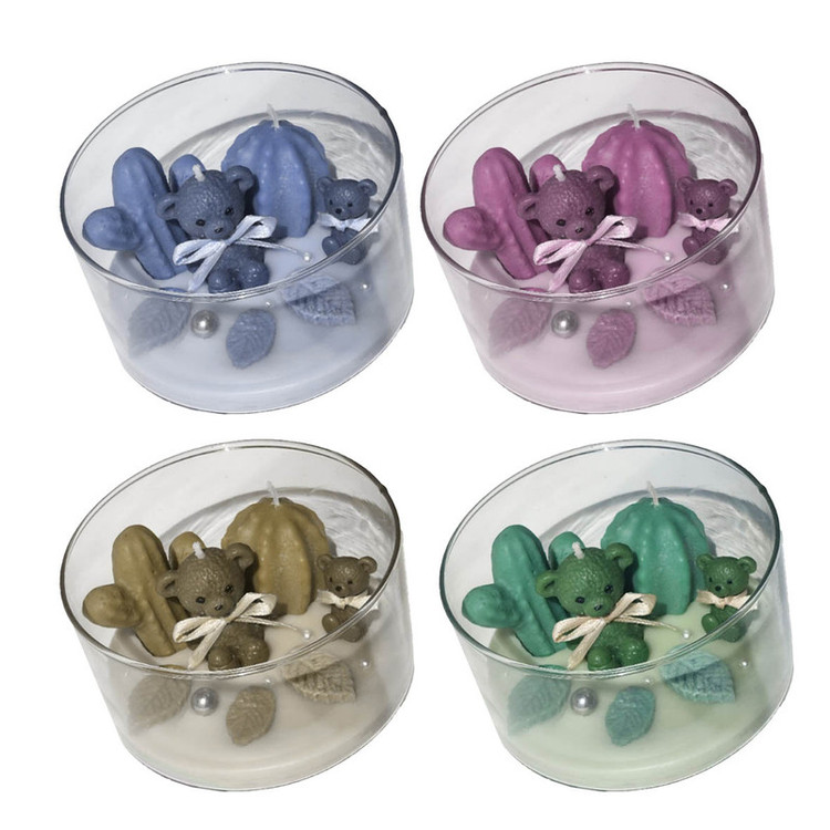 شمع دست ساز مدل شیشه ای طرح خرس و کاکتوس مجموعه 4 عددی