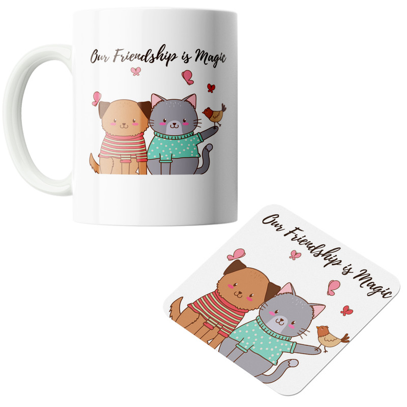 خرید ماگ-لیوان دوستی گربه ها و پرنده کد DKC291 بدون زیر لیوانی