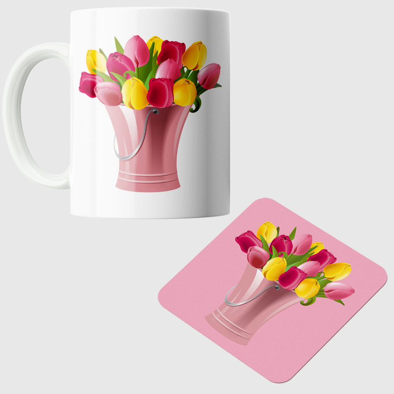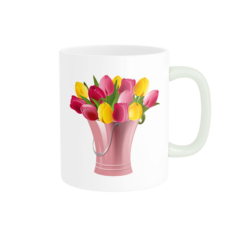 خرید ماگ-لیوان سطل گل های لاله کد DKC349 بدون زیر لیوانی