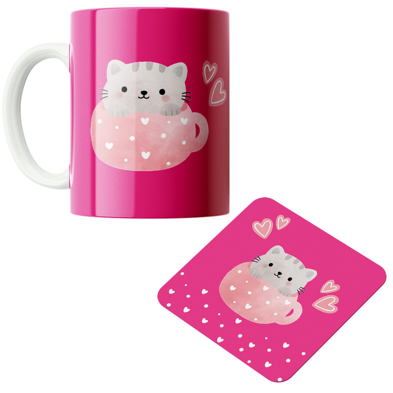 خرید ماگ-لیوان گربه در فنجان کد DKC285 بدون زیر لیوانی