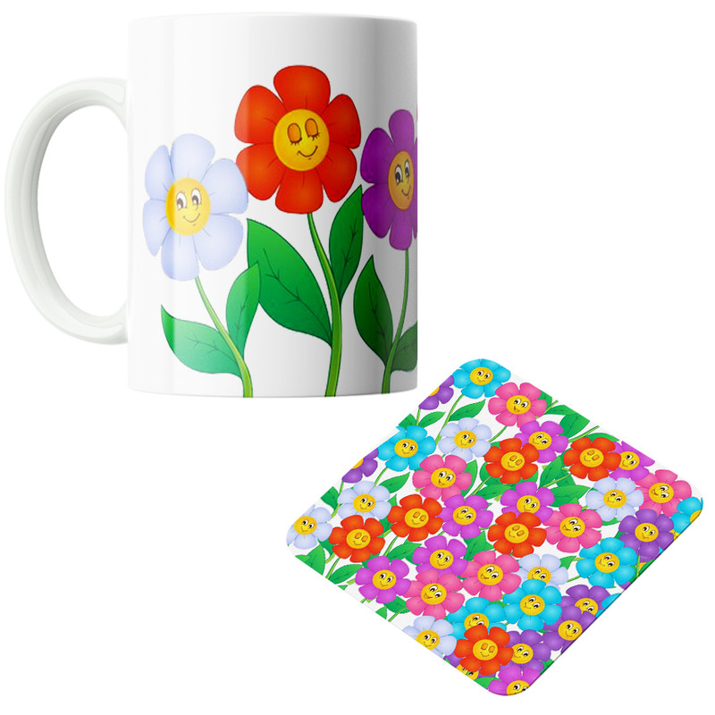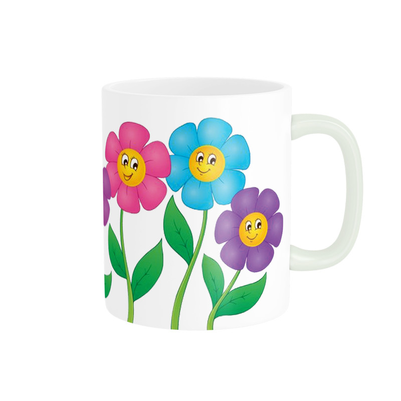خرید ماگ-لیوان گل های رنگارنگ خندان کد DKC394 بدون زیر لیوانی