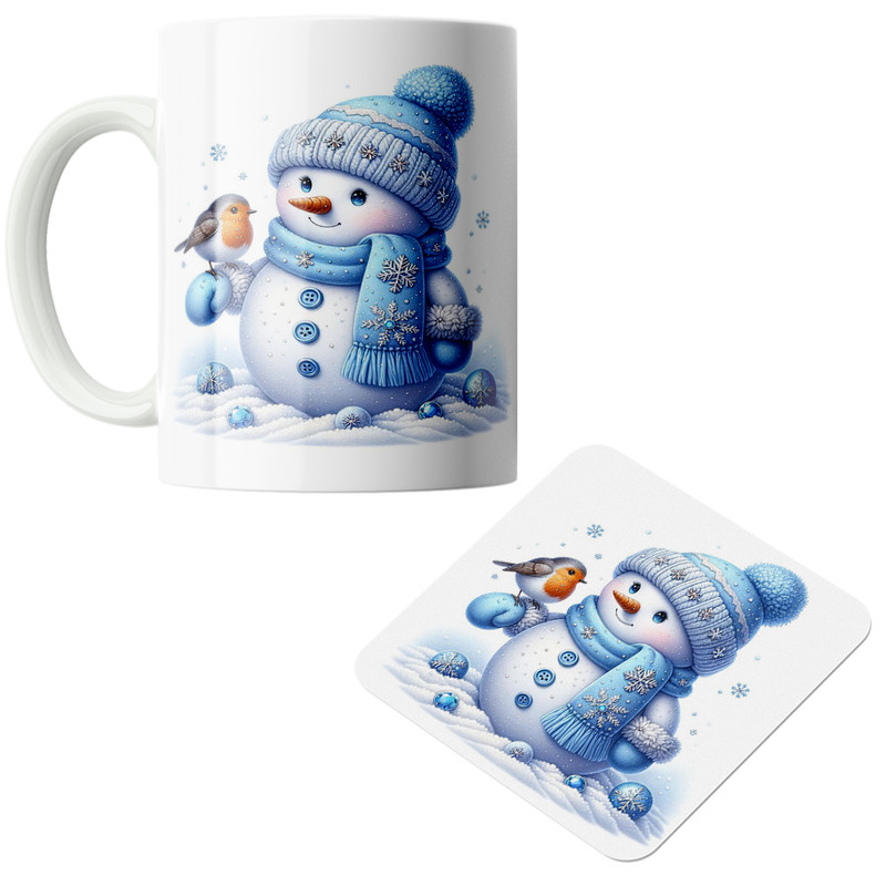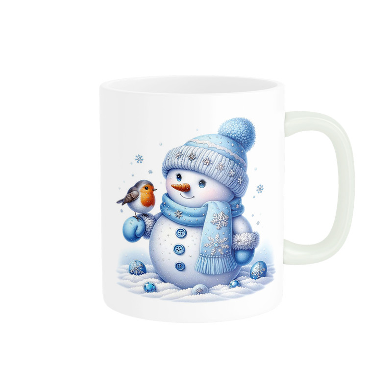 خرید ماگ-لیوان آدم برفی و گنجشک کد DKC646 بدون زیر لیوانی