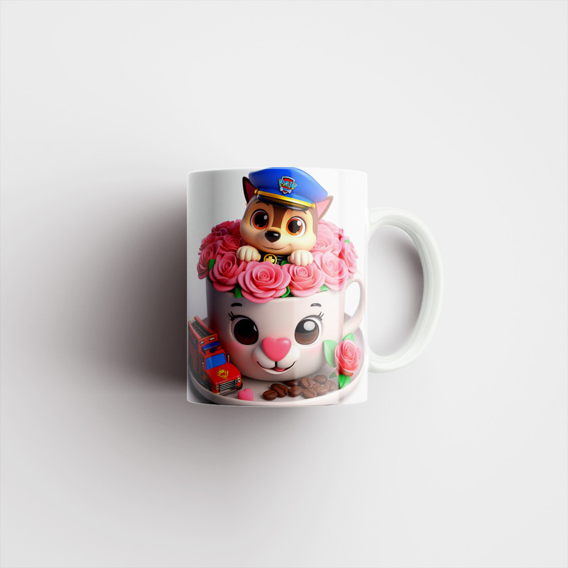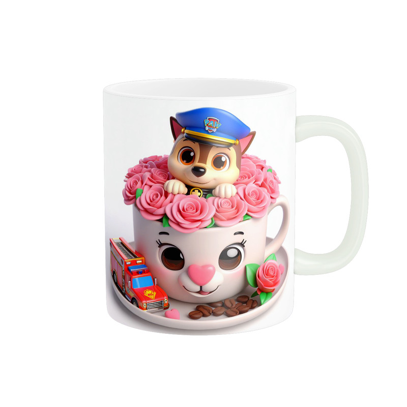 ماگ پاد آفرین طرح سگ های نگهبان مدل فنجون قهوه و گل رز کد 1932