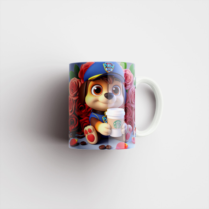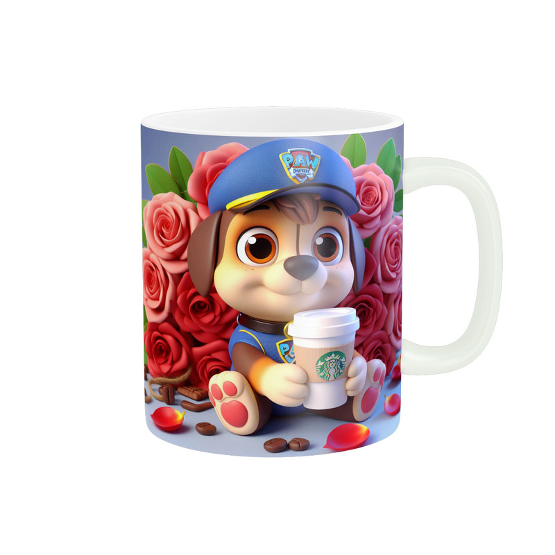 ماگ پاد آفرین طرح سگ های نگهبان مدل قهوه و گل رز کد 1933