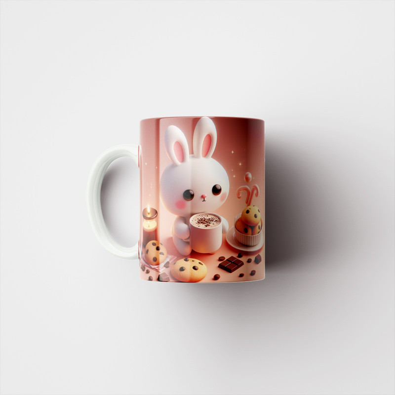 ماگ پاد آفرین طرح فنجون قهوه و خرگوش کارتونی کد 1702