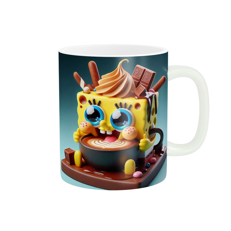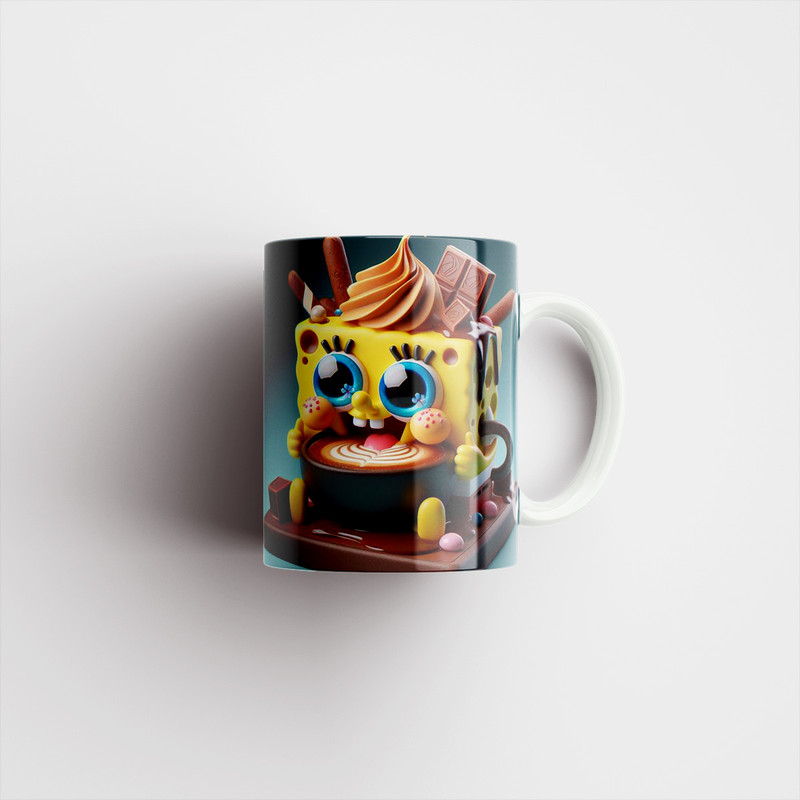 ماگ پاد آفرین طرح باب اسفنجی مدل فنجون قهوه و شکلات کد 767