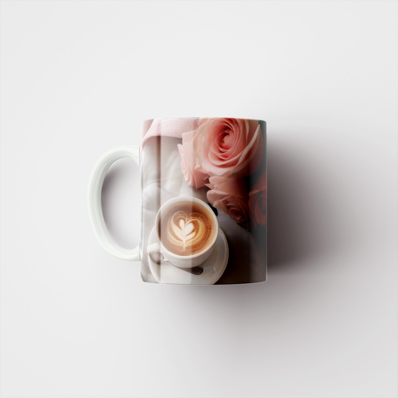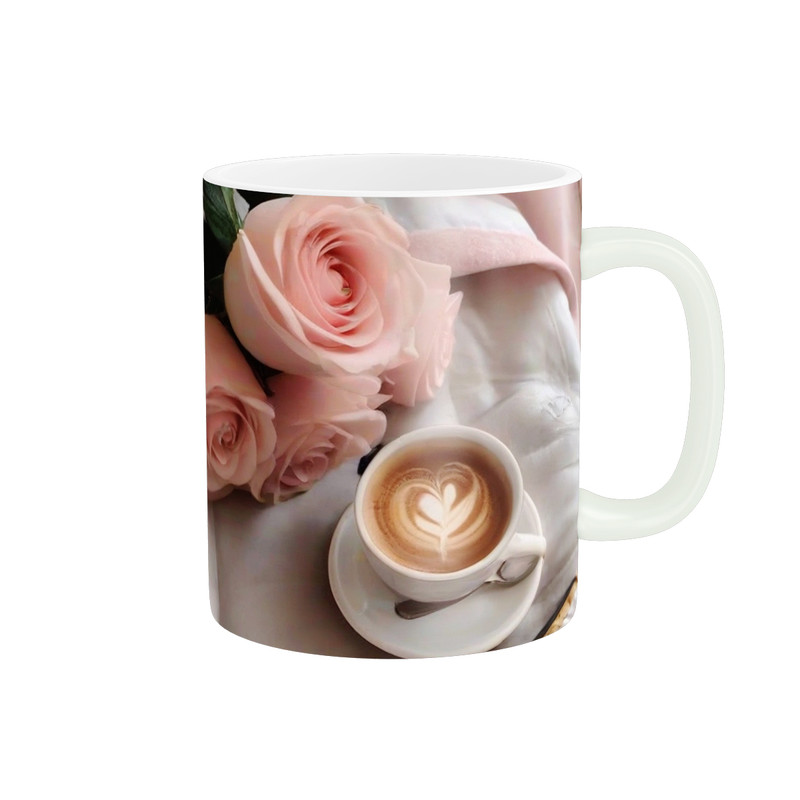خرید ماگ-لیوان فنجون قهوه و گل رز کد 1833