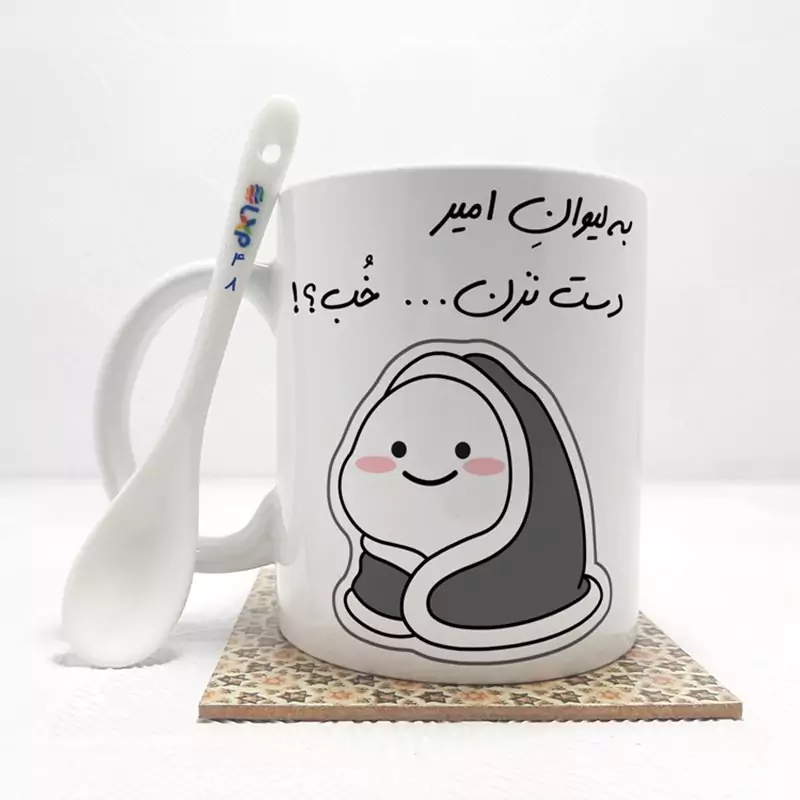 خرید ماگ-لیوان به لیوان امیر دست نزن خب (با قابلیت تغییر نام) بدون .،زیر لیوانی . کد 48