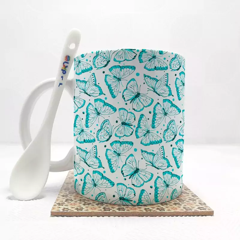 خرید ماگ-لیوان گرافیکی پروانه بدون .،زیر لیوانی . کد 94