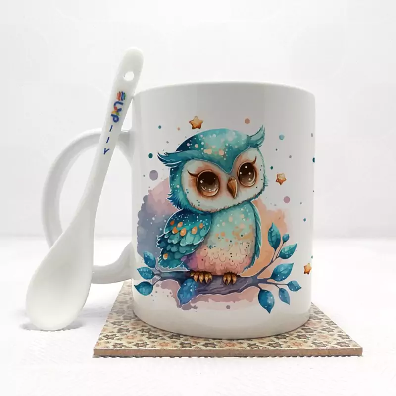 خرید ماگ-لیوان کارتونی جغد بدون .،زیر لیوانی . کد 117