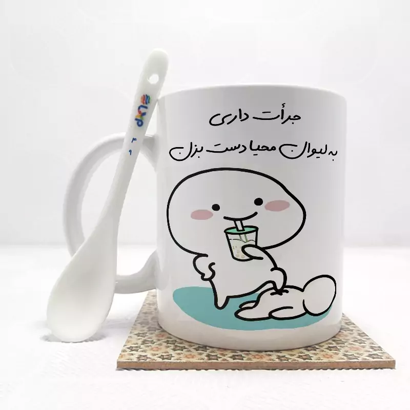 خرید ماگ-لیوان جرات داری به لیوان محیا دست بزن (با قابلیت تغییر نام) بدون .،زیر لیوانی . کد 49