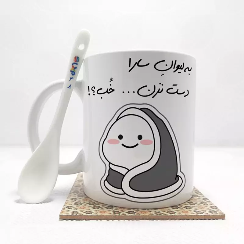 خرید ماگ-لیوان به لیوان سارادست نزن خب (با قابلیت تغییر نام) بدون .،زیر لیوانی . کد 48