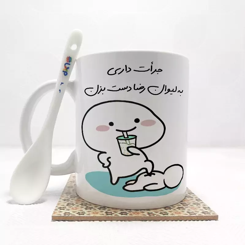 خرید ماگ-لیوان جرات داری به لیوان رضا دست بزن (با قابلیت تغییر نام) بدون .،زیر لیوانی . کد 49