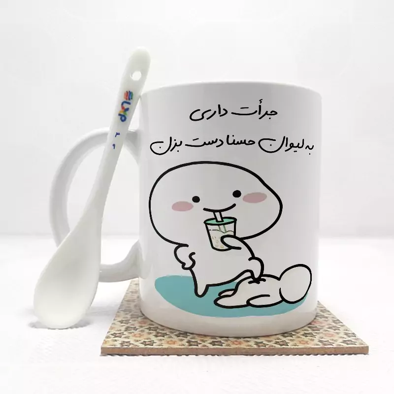 خرید ماگ-لیوان جرات داری به لیوان حسنادست بزن (با قابلیت تغییر نام) بدون .،زیر لیوانی . کد 49