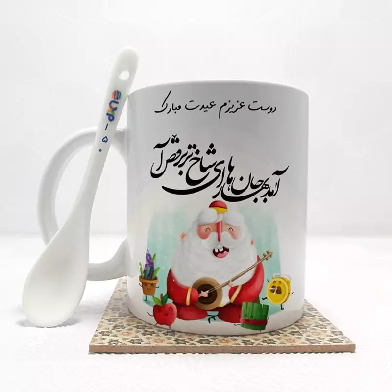 خرید ماگ-لیوان دوست عزیزم عیدت مبارک(باقابلیت تغییر نام)بدون .،زیر لیوانی . کد 150