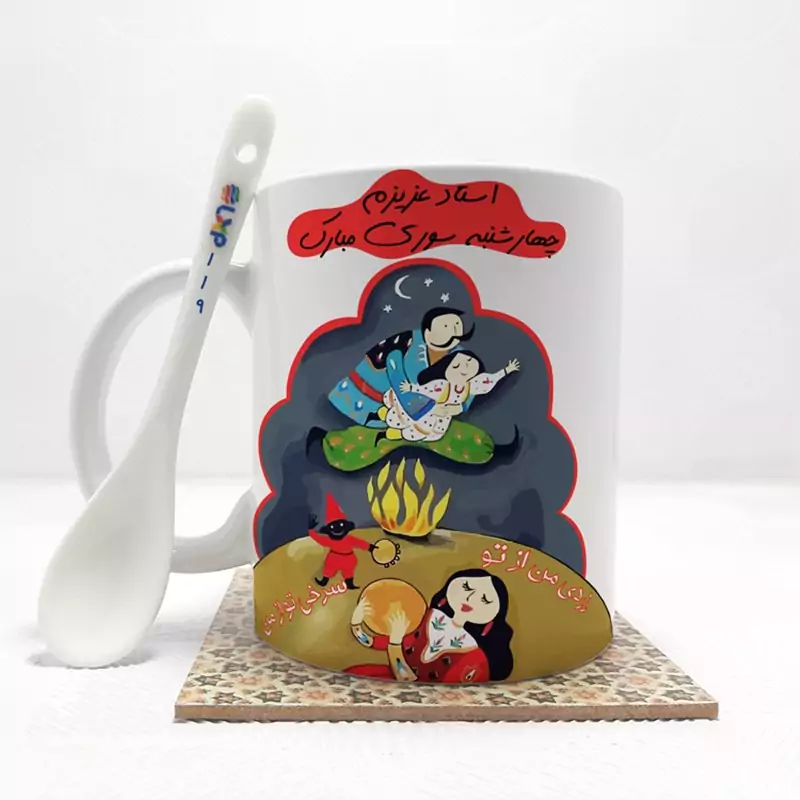 خرید ماگ-لیوان استاد عزیزم چهارشنبه سوری مبارک (باقابلیت تغییر نام)بدون .،زیر لیوانی . کد 119
