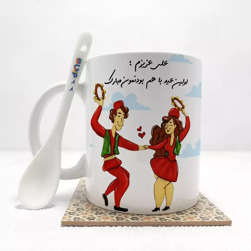 خرید ماگ-لیوان علی عزیزم اولین عید باهم بودنمون مبارک (با قابلیت تغییر نام) بدون .،زیر لیوانی . کد 88