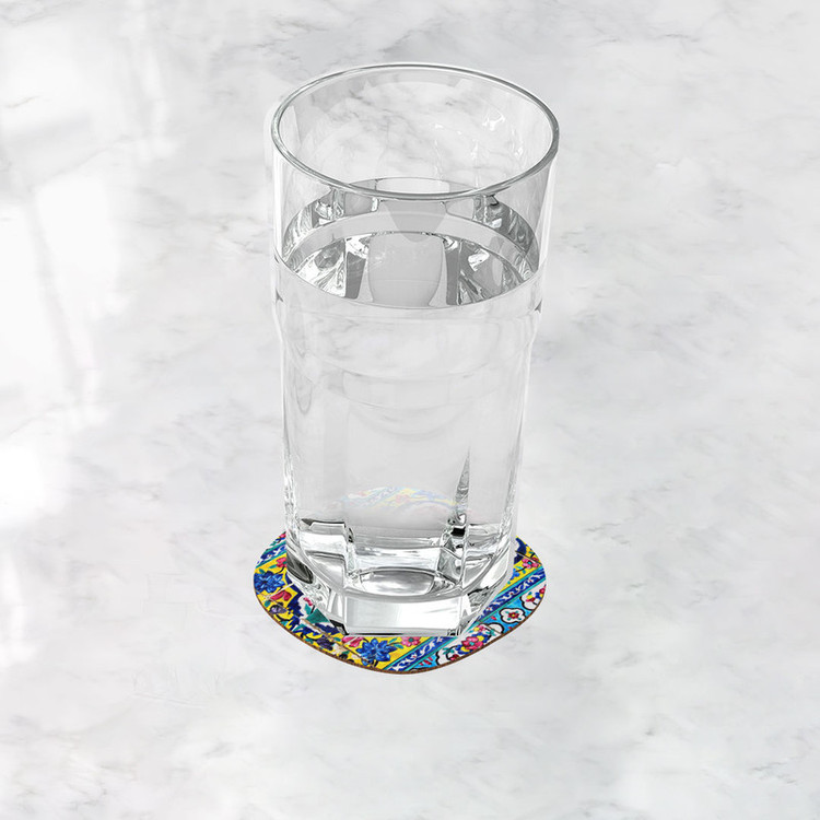 زیر لیوانی چیتوکالا ترمه طراحان ایده مدل کاشی گل و پرنده کد cfp1275 بسته 6 عددی