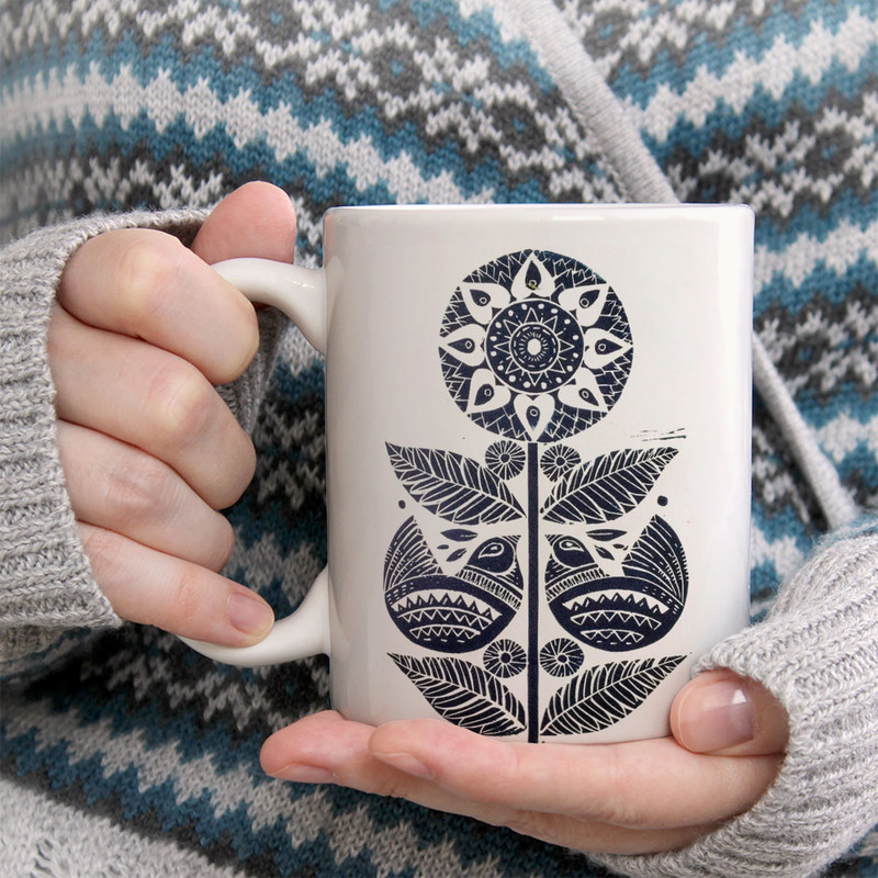 ماگ پادآفرین مدل گل و پرنده کد 3945