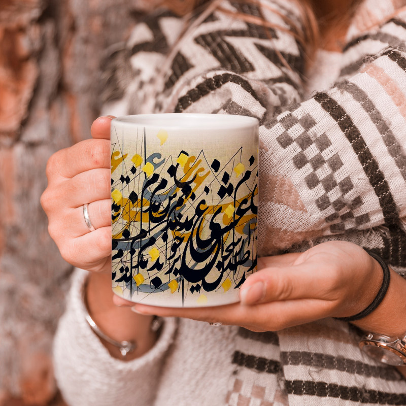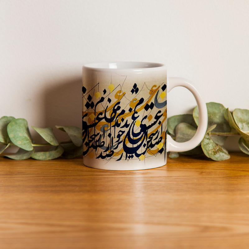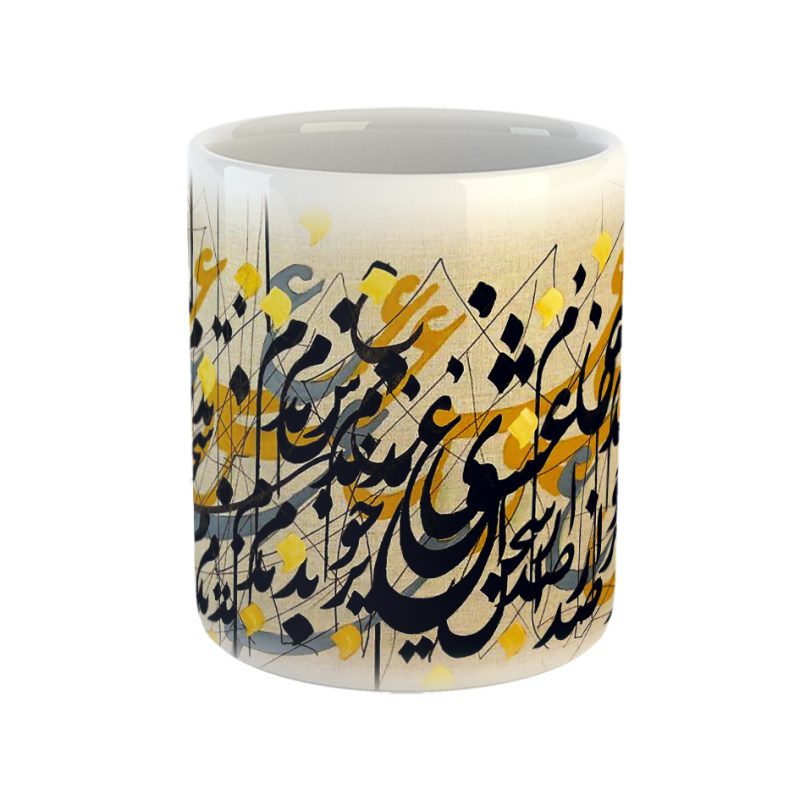 خرید ماگ-لیوان خوشنویسی شعر از صدای سخن عشق ندیدم خوشتر